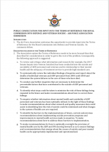 The Air Force Association has submitted its input to the Terms of Reference for the Royal Commission into Defence and Veteran Suicide.